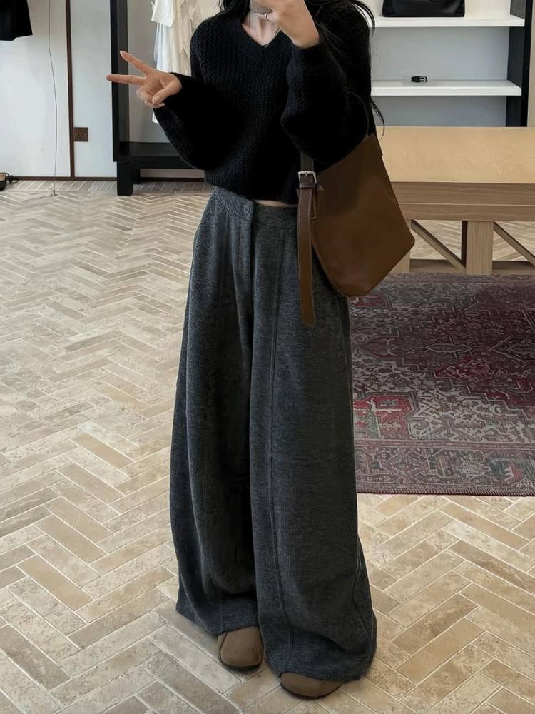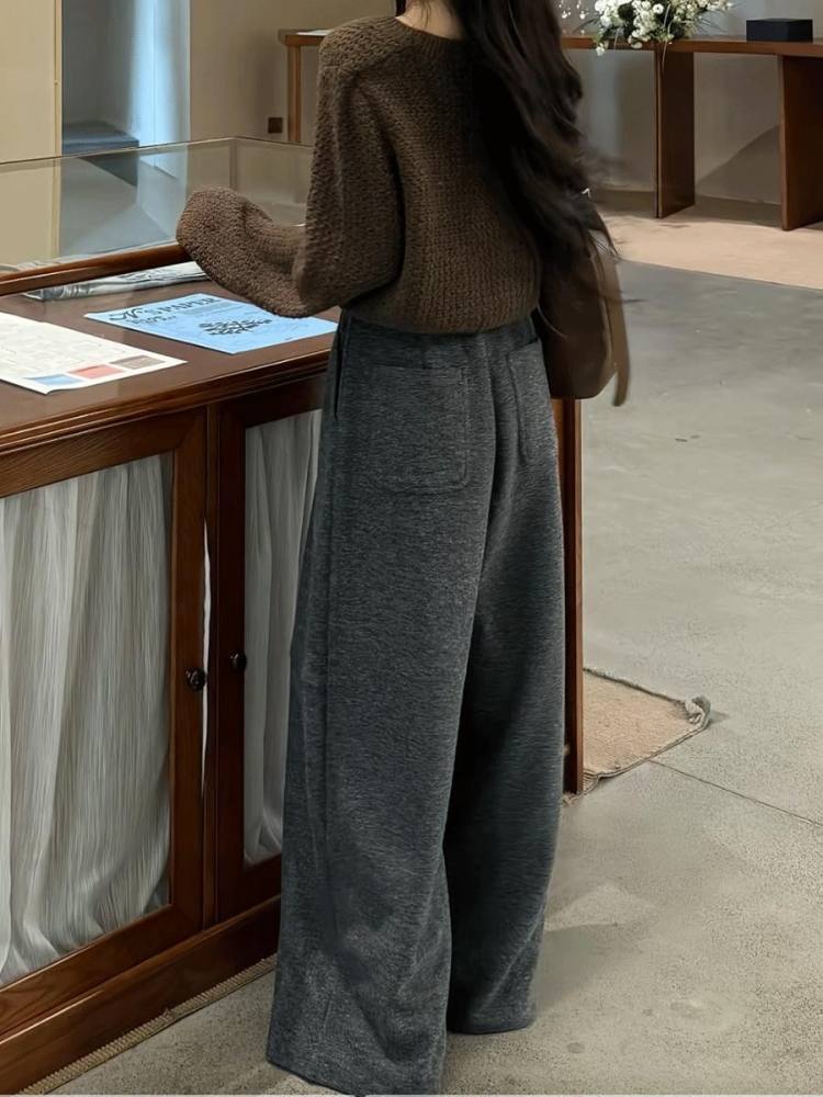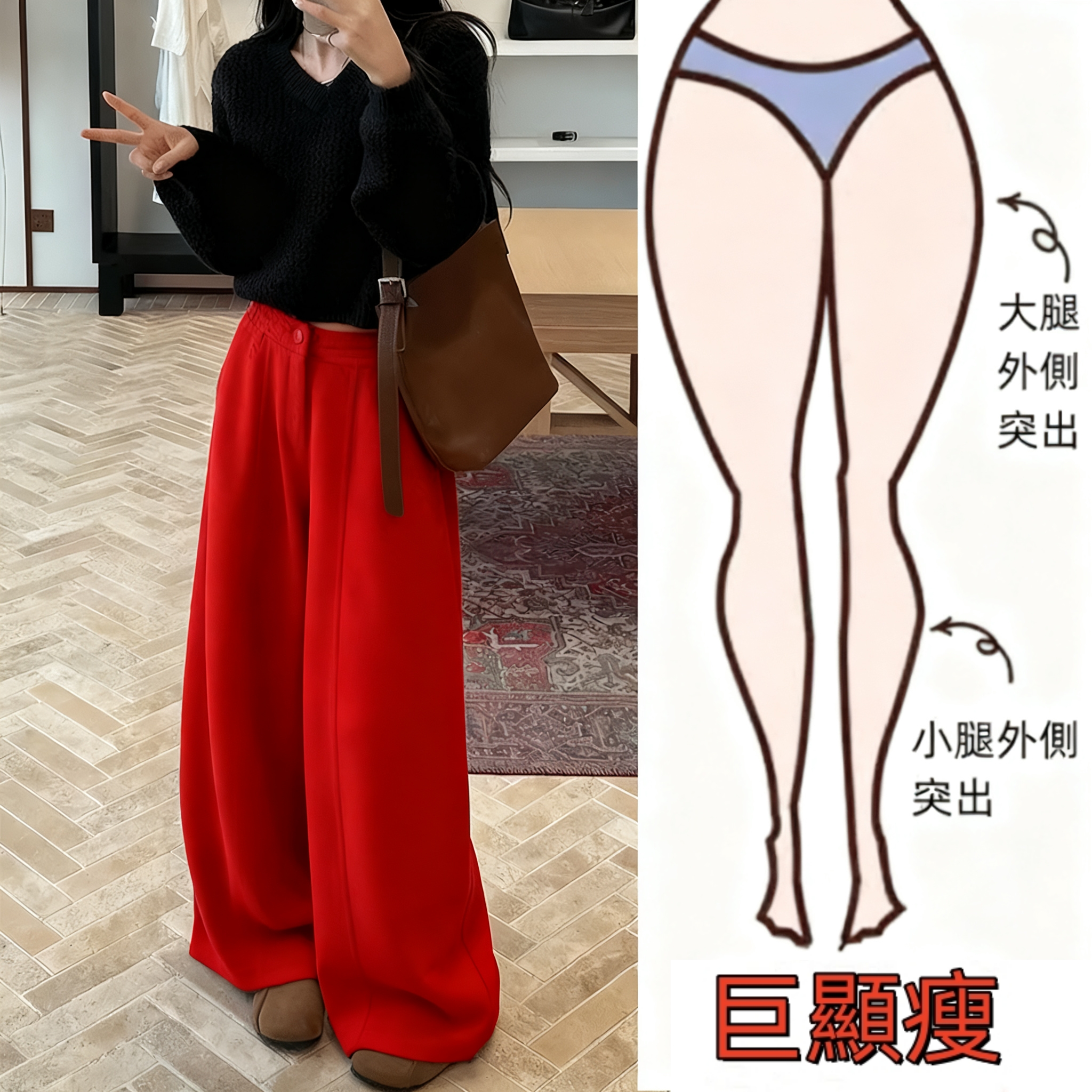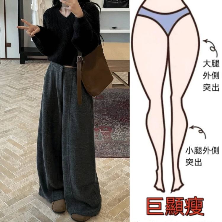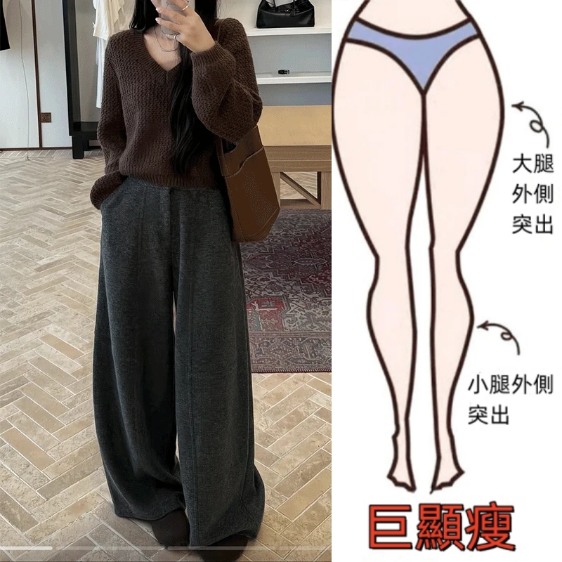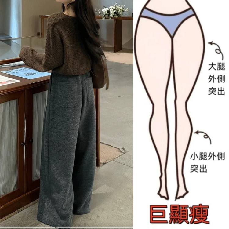 秋冬新款韓版大碼毛呢洋氣顯瘦腿休閒褲